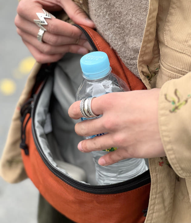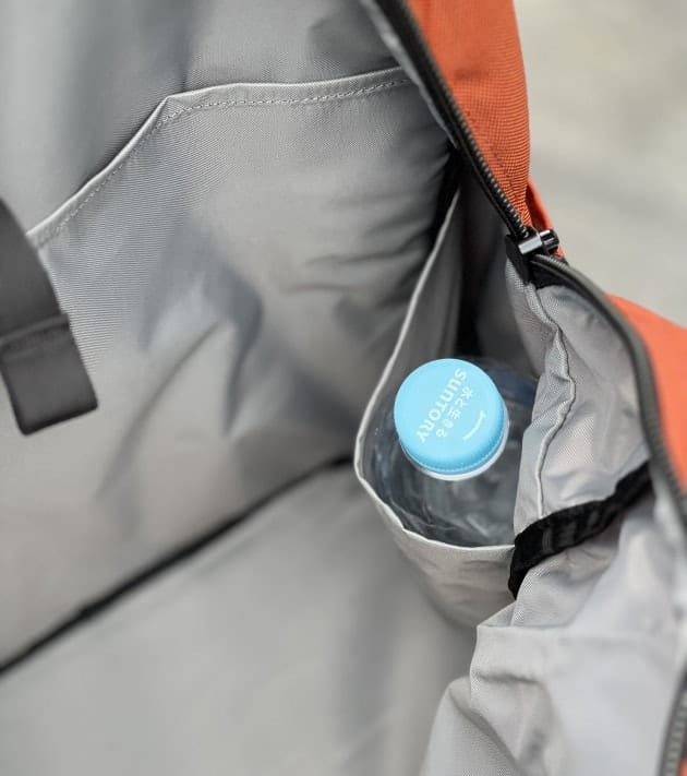 ポケットは二重構造で、メインポケットにはペットボトルも楽々入る大きさです。
