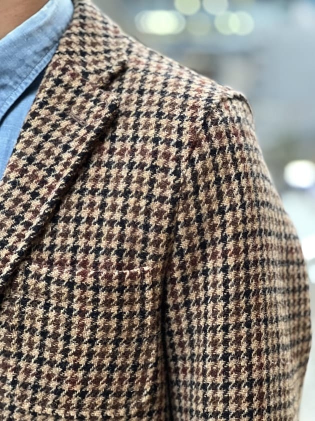 こちらのガンクラブとブラウンヘリンボーンに関してはクルミボタンを使用したカントリーなムードも感じられますよね。