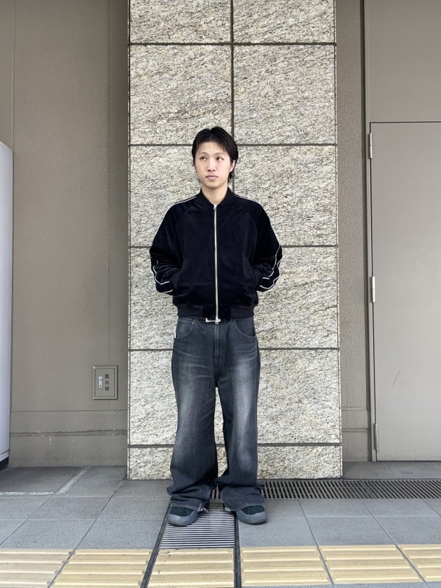 スカジャンのシルエットが今っぽいということもあり、デニムはデニムでもバギーのデニムと合わせてAラインのシルエットを意識しました!