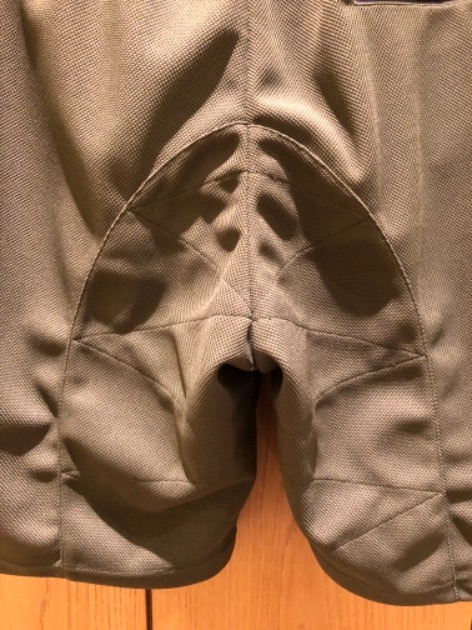 サドルがあたる内股部分には、摩擦に耐えられるよう当て布が貼られたデザイン。