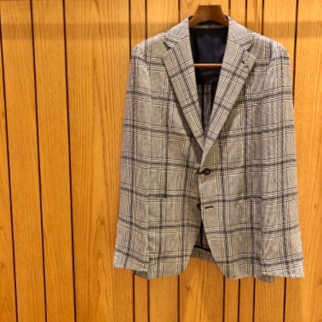 続いては、リネンウールならではの風合いとクラシックなグレンプレイド柄のジャケット、