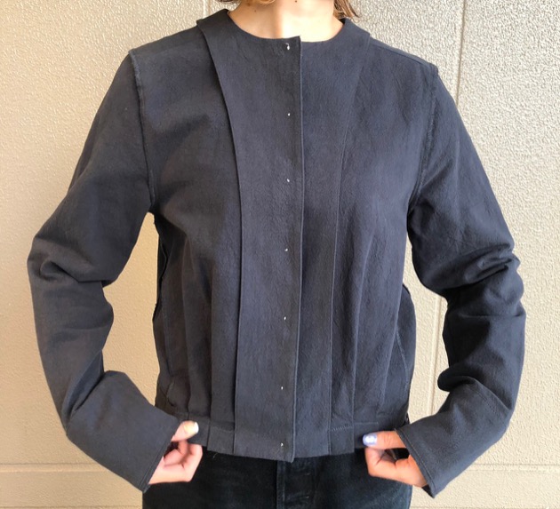 少しだけ開く仕様のひじ部分が女性らしさをプラスするアクセントになっています。