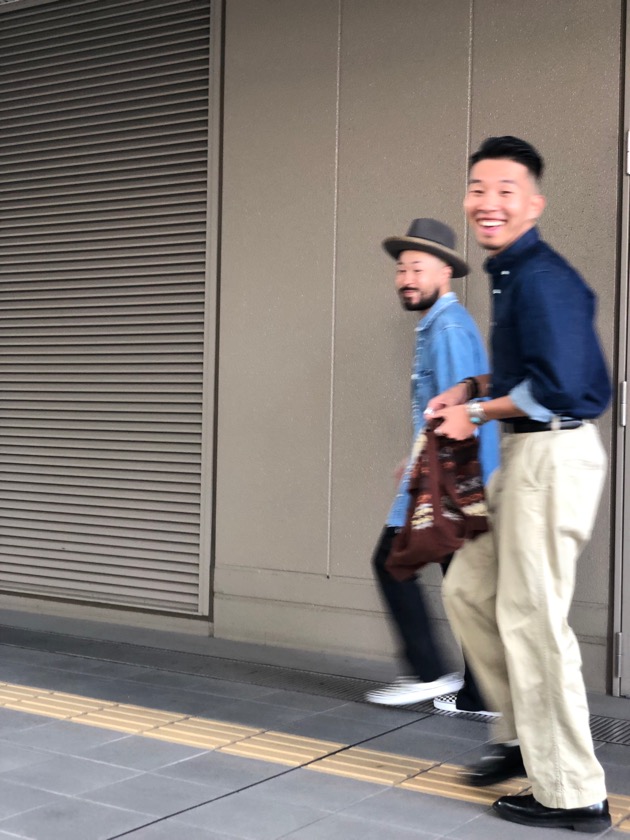 偶然同じ場所でスタイリングの撮影をしていた当店のメンズカジュアル担当のスタッフ長尾(右)と大場(左)の写真で締め括りにしたいと思います。