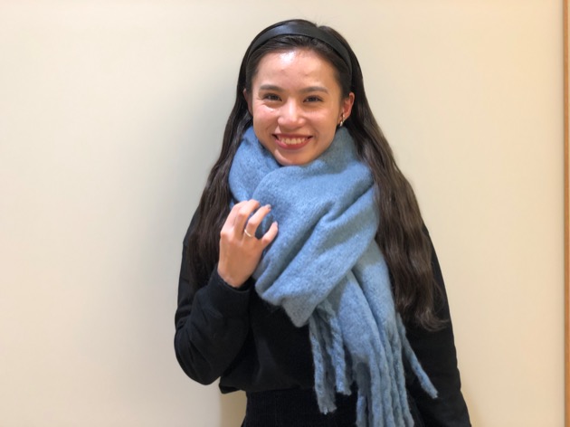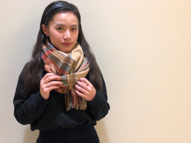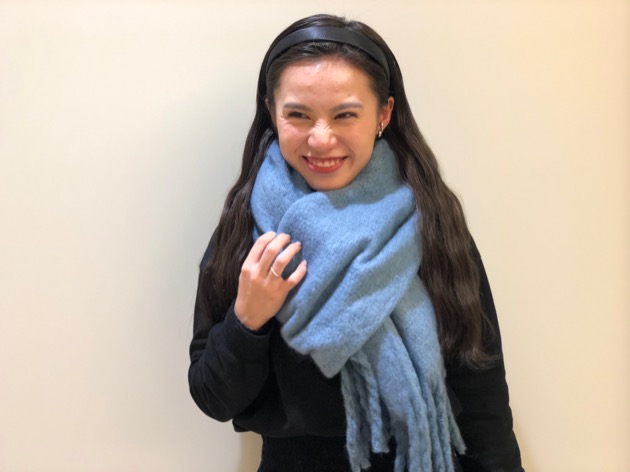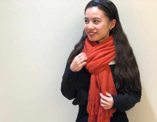めちゃくちゃ良い笑顔に気を取られてしまいそうになりますが、ボリュームのあるこちらのマフラー。