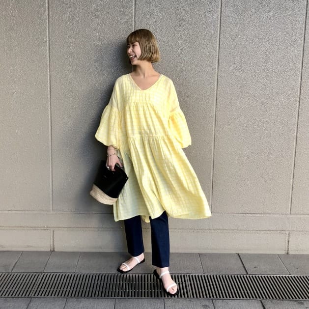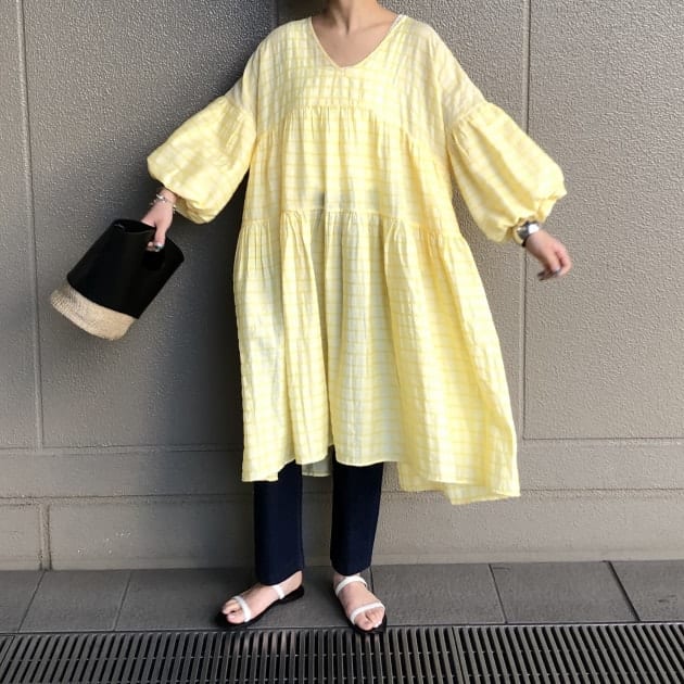 風でなびく、ふんわりとしたシルエットや袖のボリューム感が特徴です。