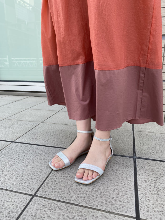 スカートの裾の2トーンがお洒落です。 肌寒い時は丈が短めのカーディガン合わせも良いですね!