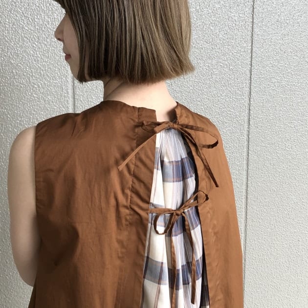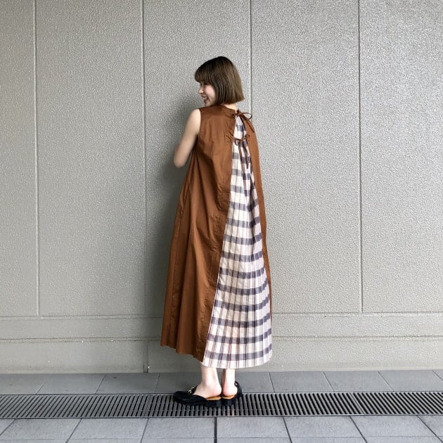 一見ベーシックなブラウンワンピースに見えますが、後ろのデザインが凝っていて可愛いんです❤︎