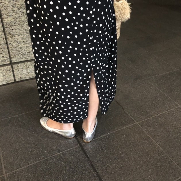スリットもしっかりと。所々に女性らしいエッセンスがあります。