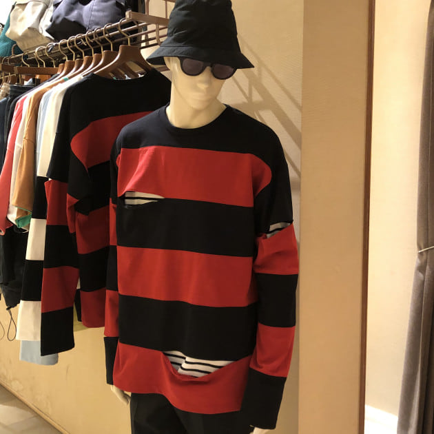 ボーダーに合わせてカットしてしまう感じと、そこに合わせてインナーもピッチの違うボーダーにしてしまう感じ!