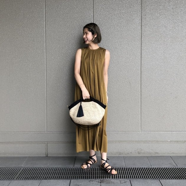 休日のカフェスタイルをイメージして持ってみました。ベーシックなワンピースに合わせてもリゾートのような雰囲気を出してくれます。