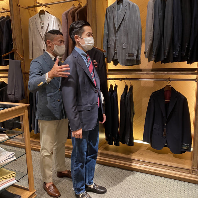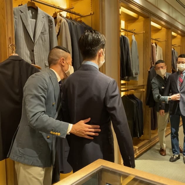 先日も、ドレスフロアでベテランスタッフ村上による指導を受けていました。期待の新人である彼が、今後どのようなスタイルを確立するのか楽しみですね。