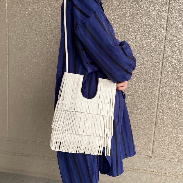 シャツの白ボタンとバッグの白色がリンクしています♪