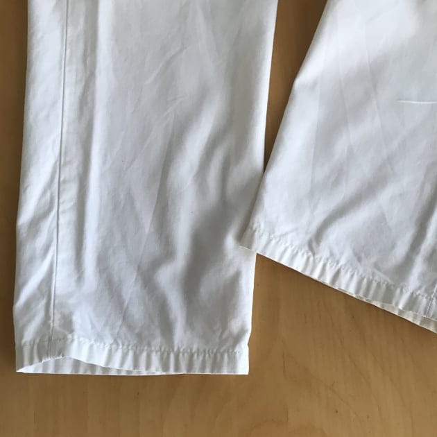 では、履いたところをクローズアップしてご覧ください。裾はひと折りしてます。