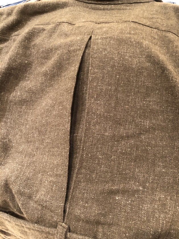 カーキはリネンとウールの混紡ファブリックを使用しているので、リネン特有のハリ感がありつつも暖かみのある生地感に。