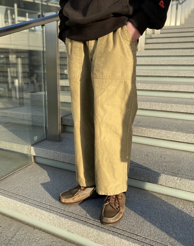 元々は基礎訓練や工場での作業といった幅広い用途で履かれていたワークパンツ。