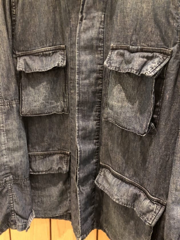 デニム、というとガシッとした厚みのある生地をイメージされる方も多いとは思いますが、実際に手に取って頂くとその柔らかさ、薄さ、着やすさを実感して頂けるかと。