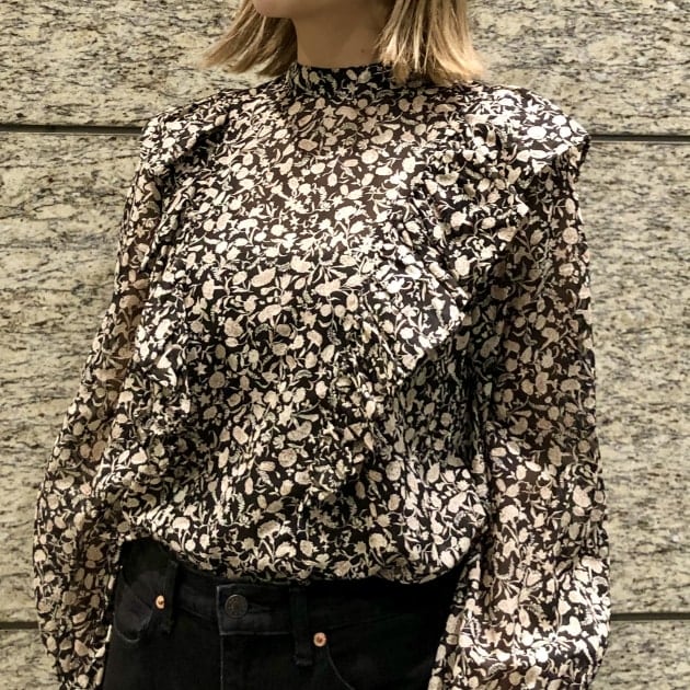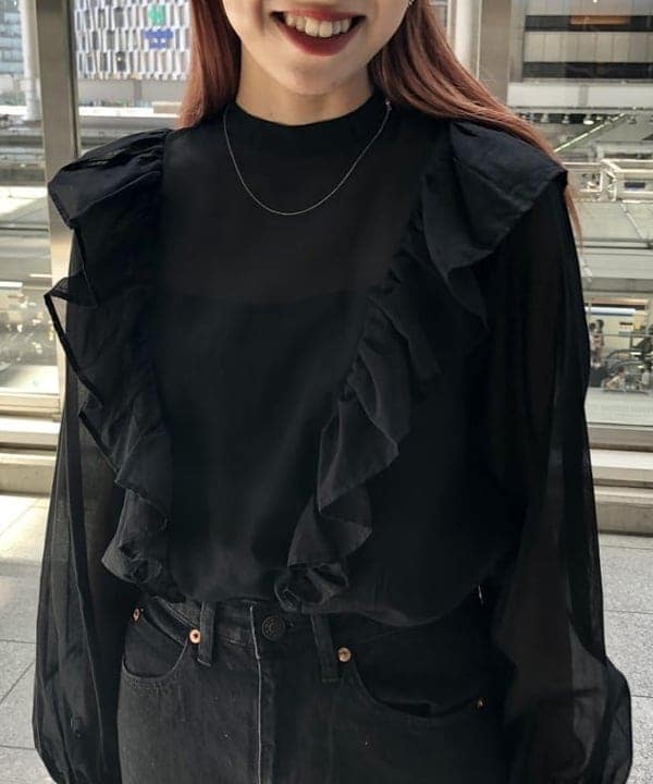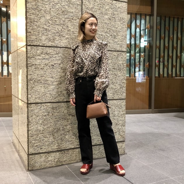 ふりふりブラウスとデニムの組み合わせは黄金バランスと言っていいほど相性抜群ですね◎