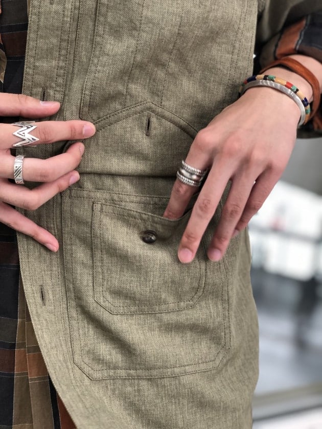 今の時期であればカットソーやシャツの上からでも羽織って頂けますし、秋冬にかけてスウェットやニットの上から羽織って頂けるサイズ感に。