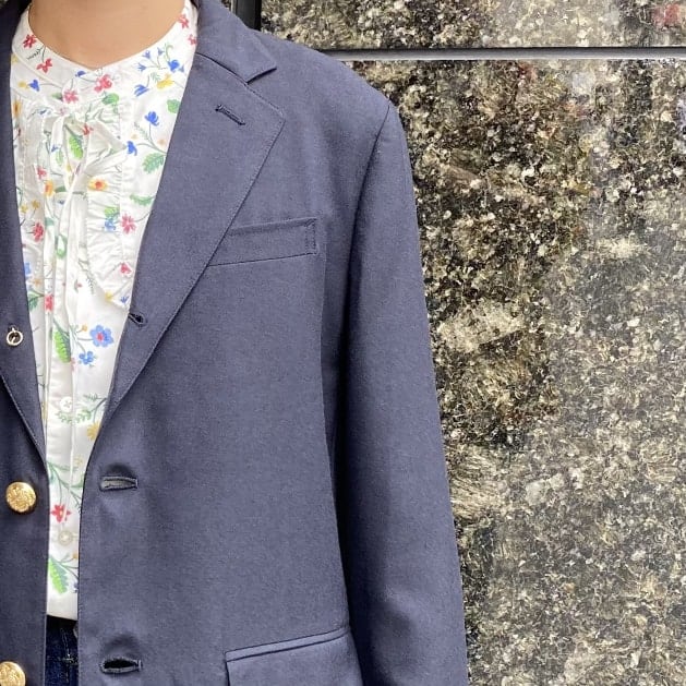 こちらのネイビーブレザーをリアルバイしております。
