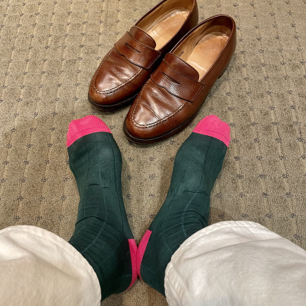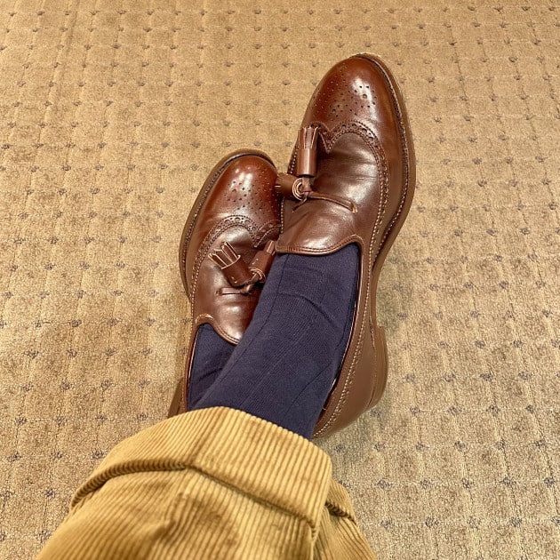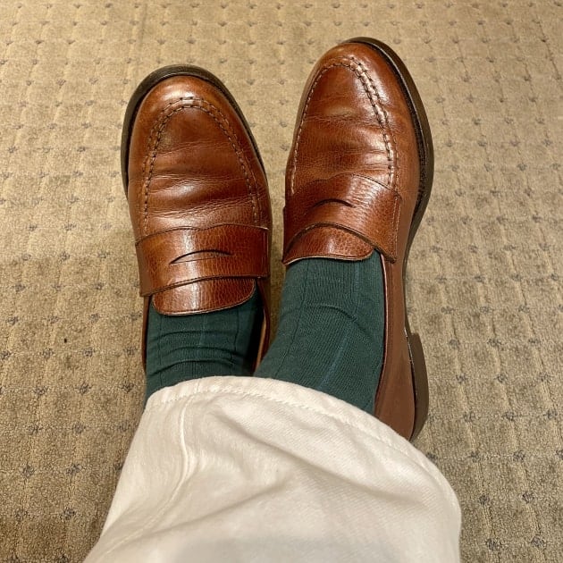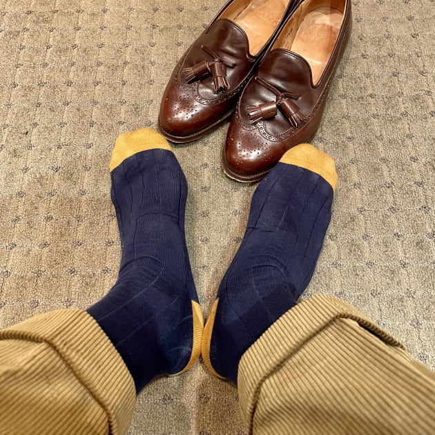 通常のリブより幅が広くてスリッポンに合わせた時にシューズとパンツの隙間からみえる世界にカジュアル感をあたえます。