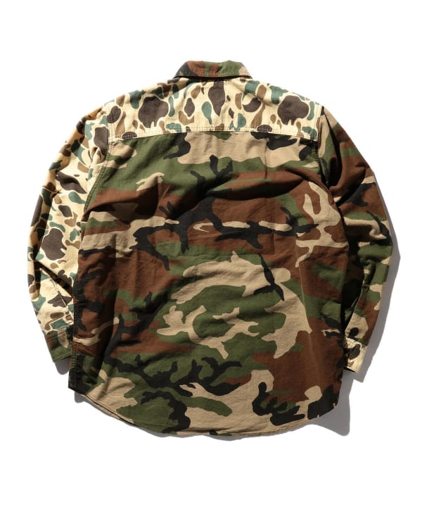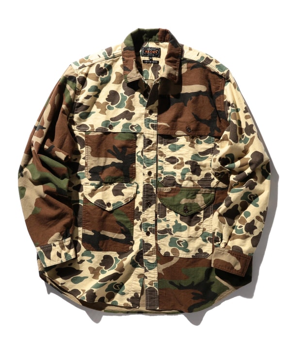 カモ柄というと、本来はその地域に溶け込むことで身を潜める為の柄ですがそれをマルチパターンに落とし込んでいます。