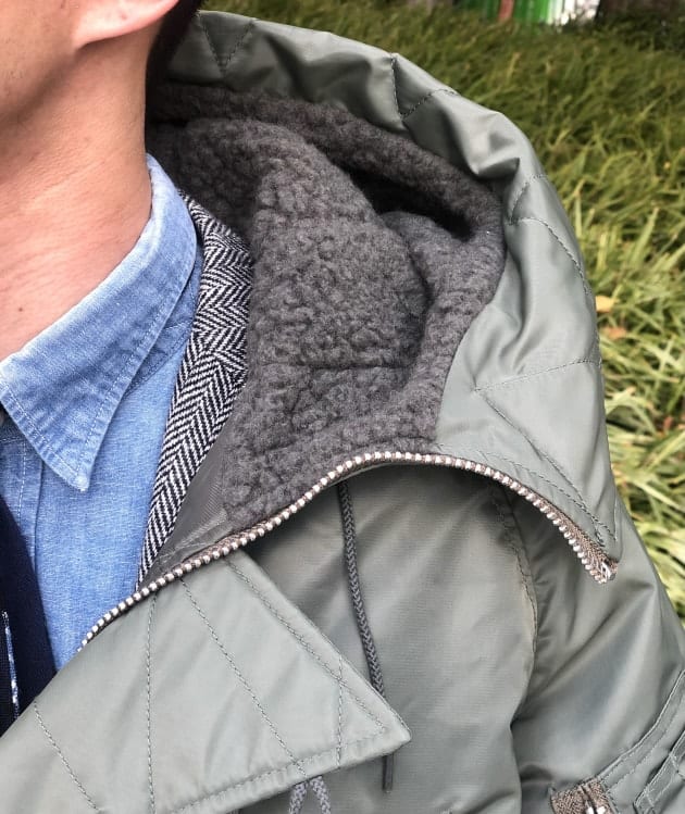 風の強い日なんかはフロントジップを上まで締めてしっかりと防寒。