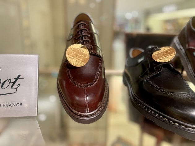 定番のチロリアンシューズ。パラブーツ創業者の孫の誕生を祝い、その名を冠したモデルとして誕生したのは有名な代表モデル。