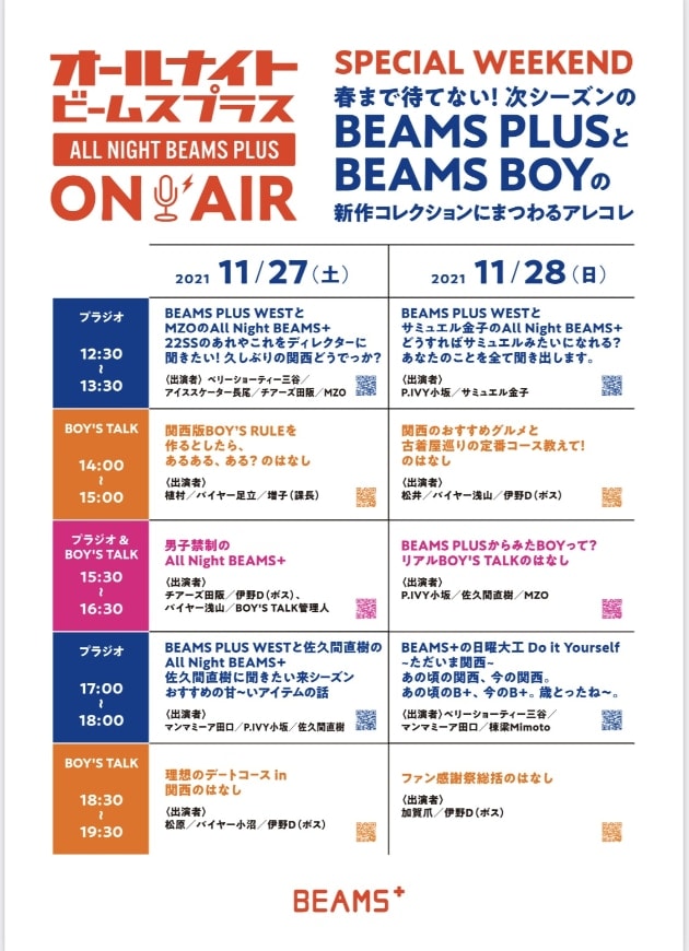 そして12:30よりBEAMS PLUSのプラジオ、BEAMS BOYのBOY'S TALKと交互に生放送が開始。