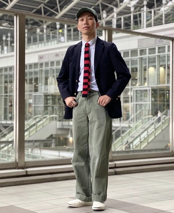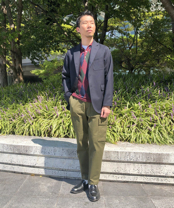 幅広いスタイルにスッと自然に馴染んでくれるのがこのネイビーブレザーが人気の理由の一つかと。