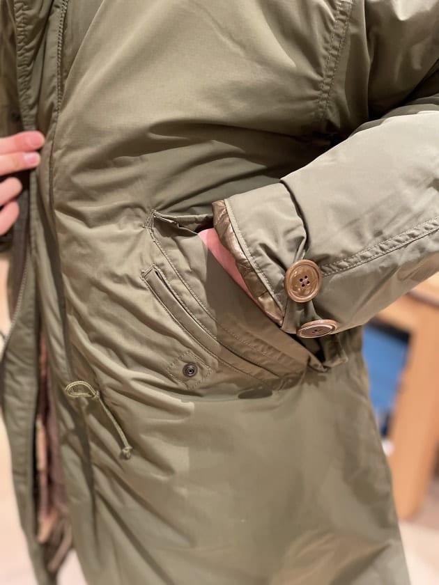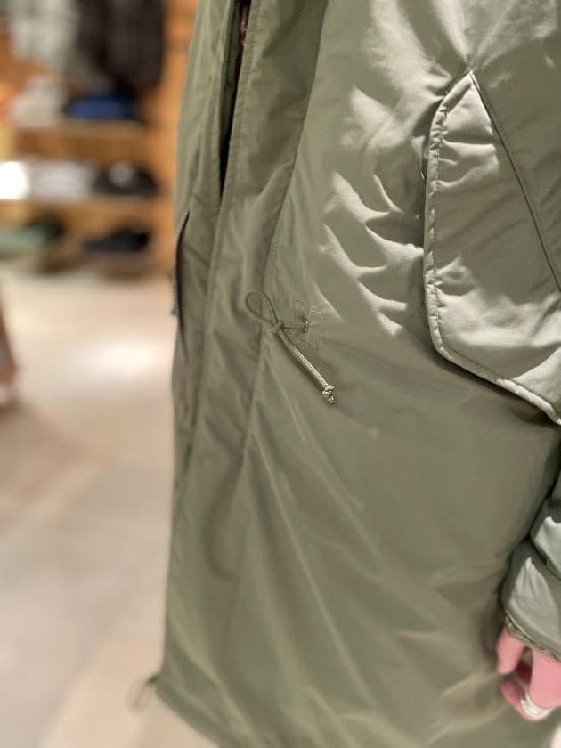 通常のM-51はコットン素材の薄い生地感に。本来であれば付属のライナーを取り付けて防寒するのですが、タウンユースにおいて取り外しの出来るアイテムはあまり使う事がなかったり、使い所がわからなかったり、、