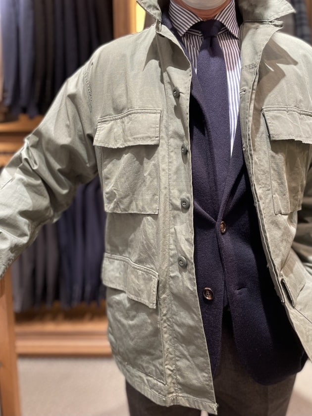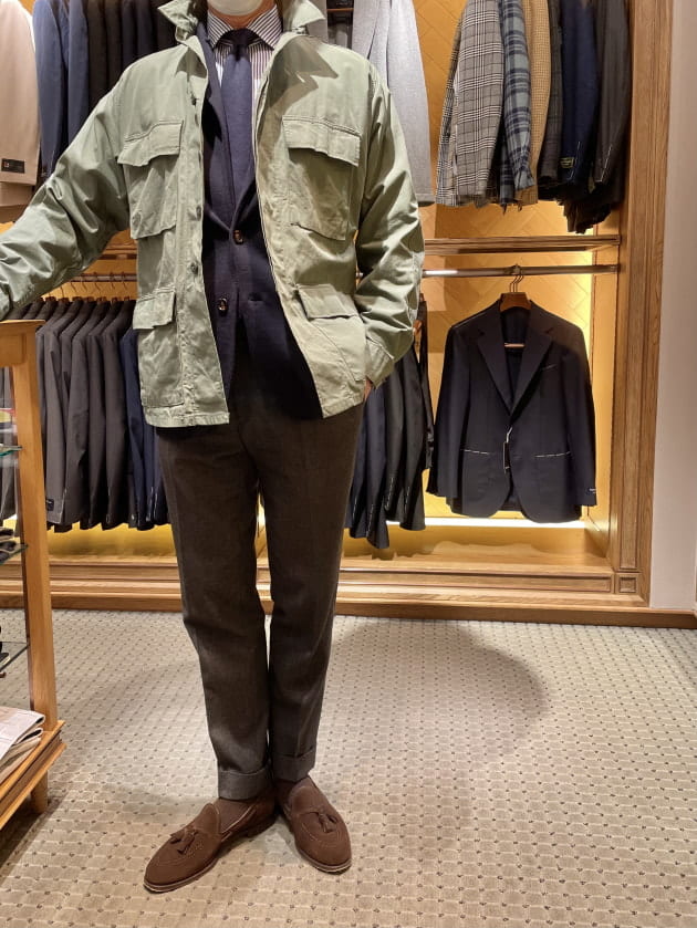 早速アウターをお脱ぎいただくと非常にシンプルなジャケットスタイリング。