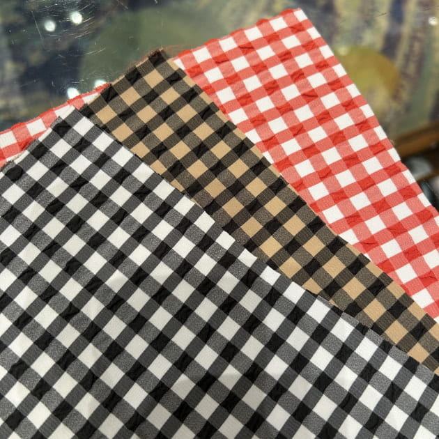 ほどよいストレッチの効いた、涼やかな着心地のシアサッカー生地になります。