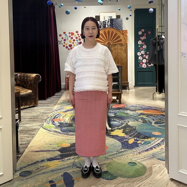 少し長めの丈が裾に向かって程よく広がるとため、体のラインを拾いにくいのも魅力です。