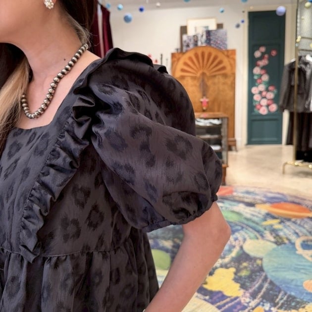 丸山はグレーのヒョウ柄を着用しておりますが、こちらの落ち着いたブラックのヒョウ柄もございます。