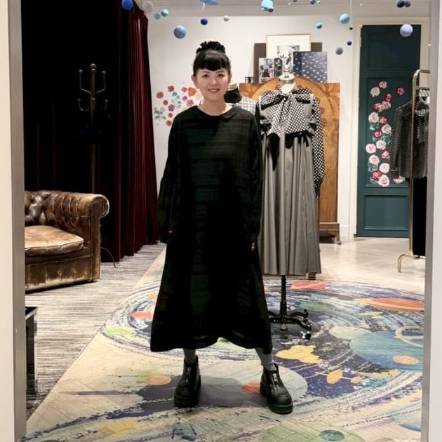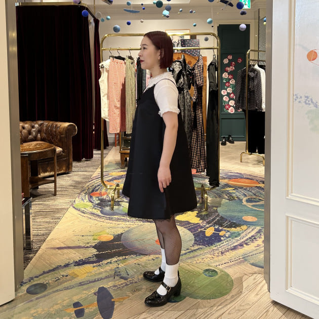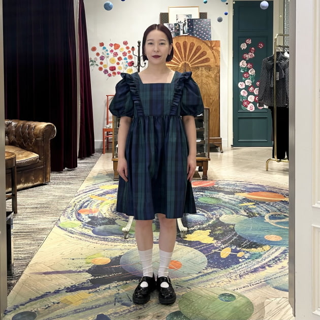 高めの位置からの切り替えでAラインに広がり、リラックスした着心地です。