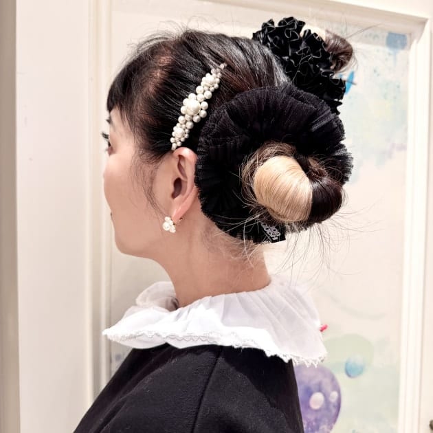 本日は「パール大好き丸山」から、ほぼ毎日身に付けている私のアイコン的存在、〈Simone Rocha〉の「パールお花ピン」を使ったヘアアレンジスタイルをご紹介いたします。