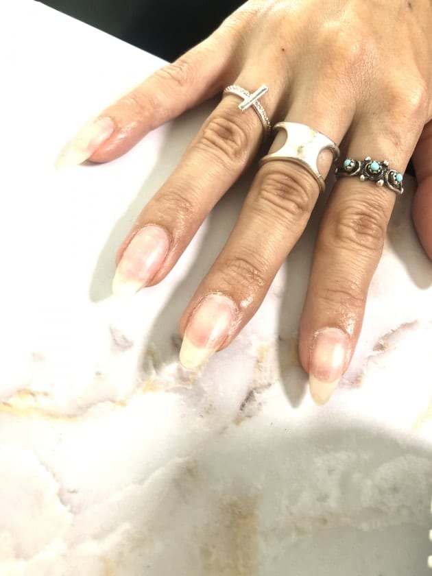 まずはきちんと甘皮処理してもらい、自爪のメンテナンスをしてもらいます。