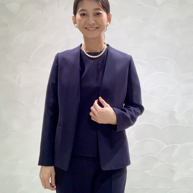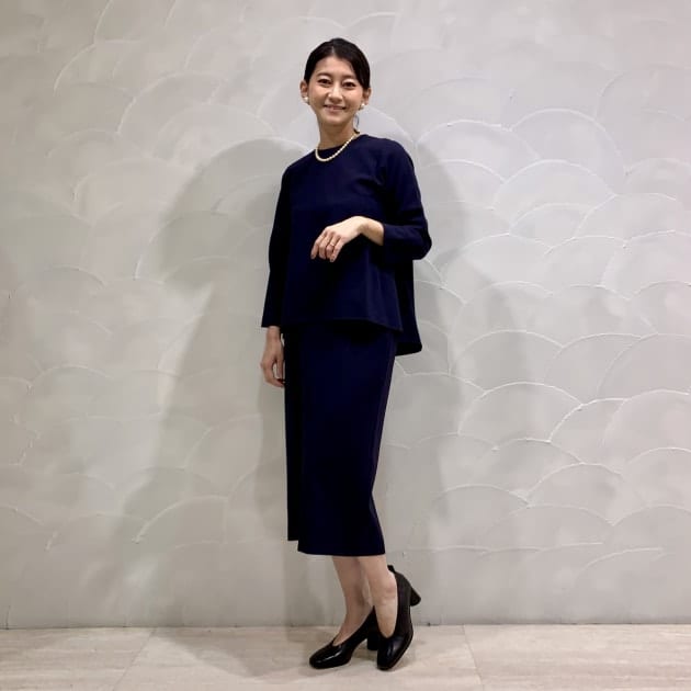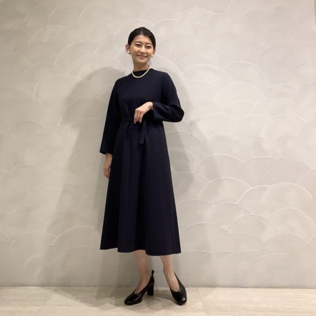 では早速こちらから!定番ネイビーの正統派!トリアセシリーズのジャケット×ワンピース。