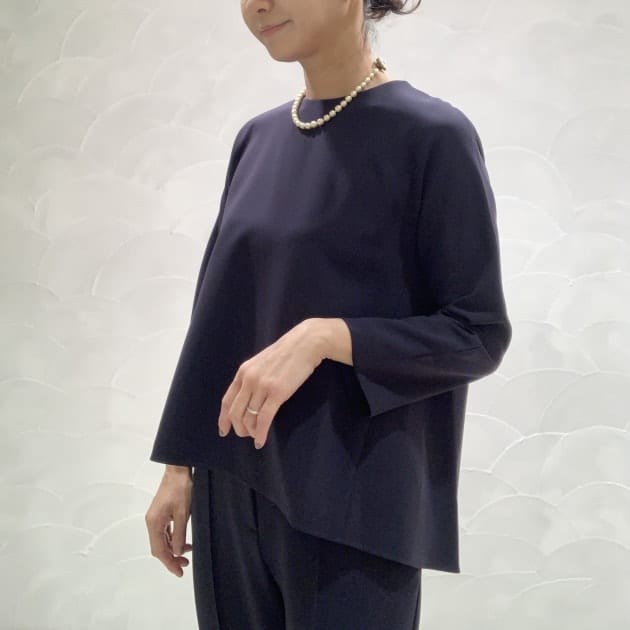 今シーズンのプルオーバーはお袖がシンプルなデザインでジャケットも羽織ることができます。裾はやや前後差あり。