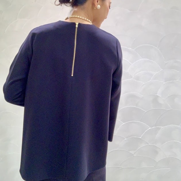 トップスは正面からはベーシックに見えますが、サイドから見ると。。。
