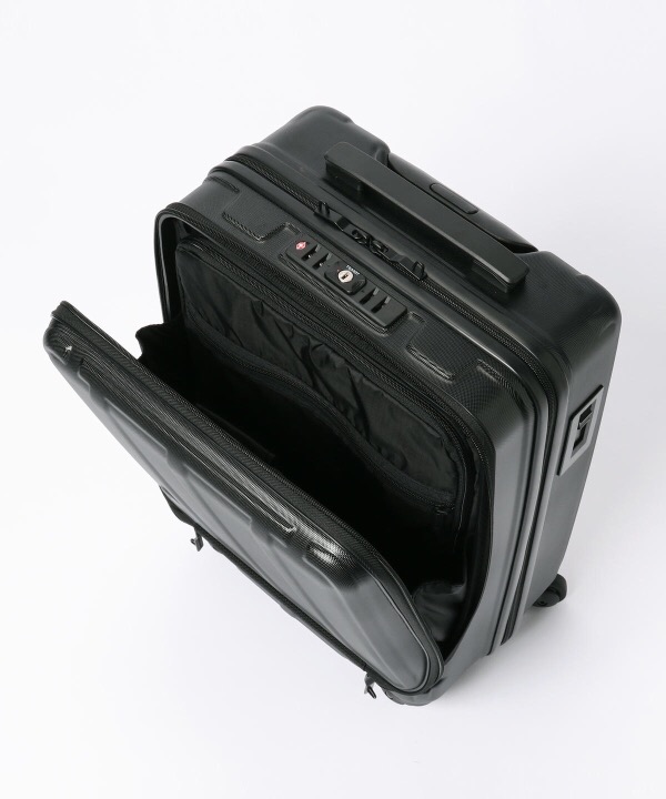 従来のキャリーケースがアップデートされました。新たにフロントにアコーディオン式のオープンポケットを設置し、小物の出し入れがしやすい仕様に。