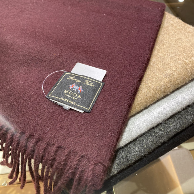 イギリスの老舗ファブリックメーカー〈MOON〉の生地を使用したウールマフラー。