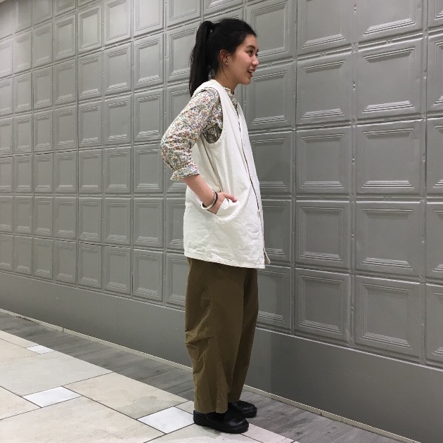 新型のスタンドカラータイプのブラウスに落とし込みました。