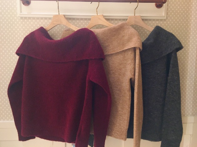 今年トレンドのワイドタートルニットはオフショルダーで着るのもとってもおすすめです!こちらも40%オフ!