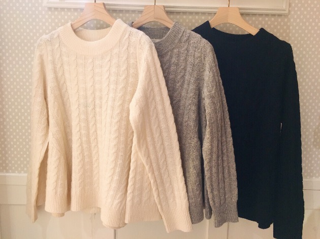 昨年も大好評だったケーブルフレアーニットは、シルエットの広がりが絶妙で、パンツにもスカートにも相性抜群です!こちらも40%オフ!