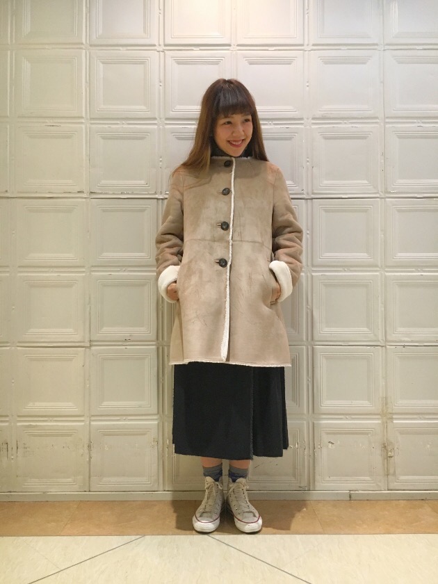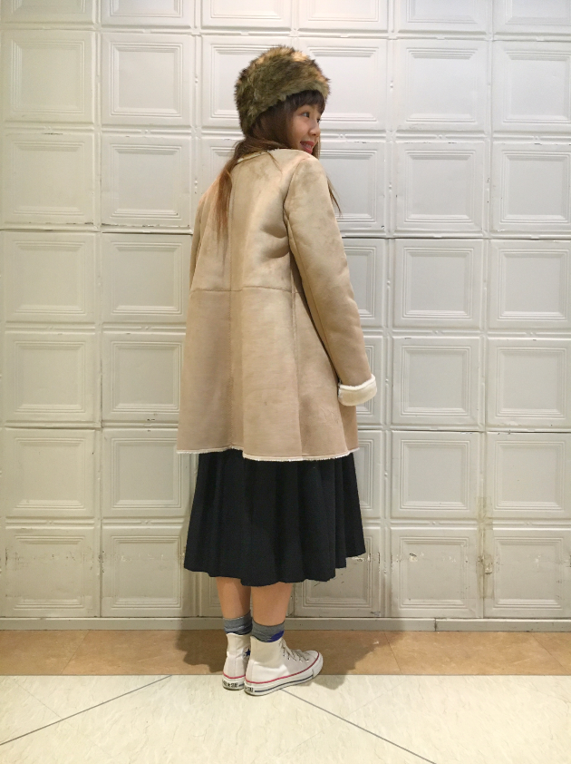 Aラインシルエットが可愛らしいフェイクムートンコートは、まるで毛布を身にまとってるような暖かさ!これから冷え込む季節にもってこいの一枚です。