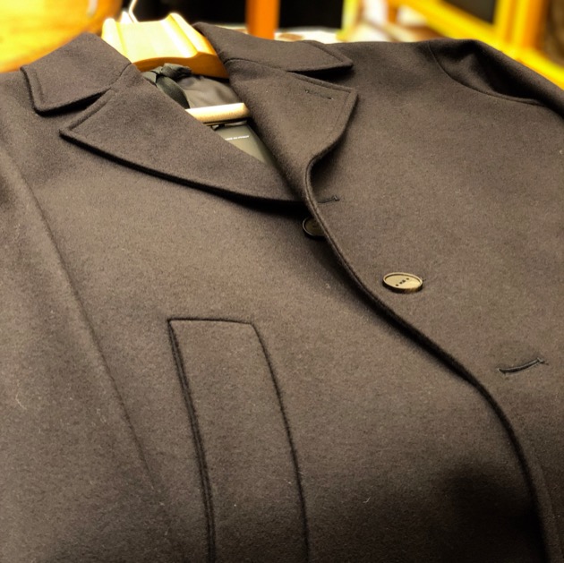 素材はウールナイロンの軽量メルトン素材。ハリがありつつ、美しいドレープ感もラグジュアリーなルックス。重たいコートだと疲れるという方にもおすすめです。