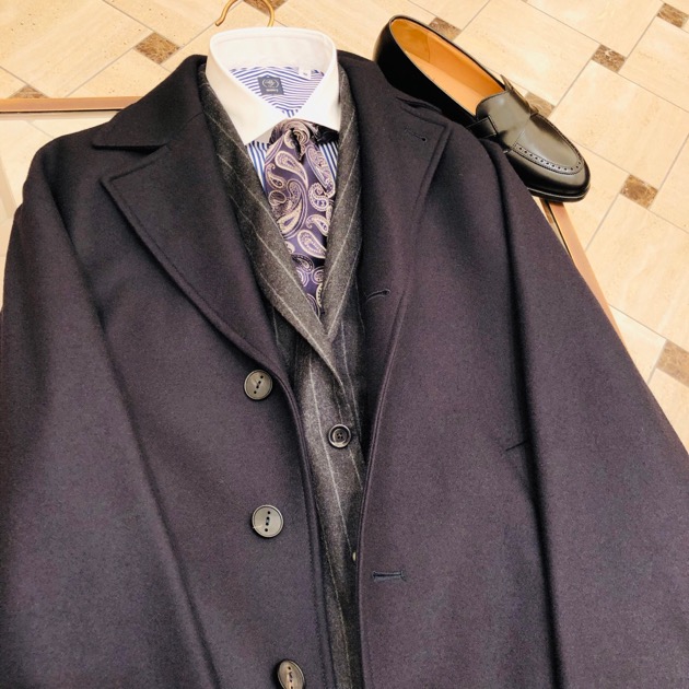 こちらのモデル"OSTUNI"は、4つボタンシングルのベルテッドコート。シンプルでオーセンティックなデザインです。