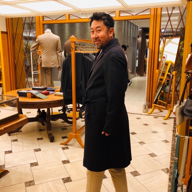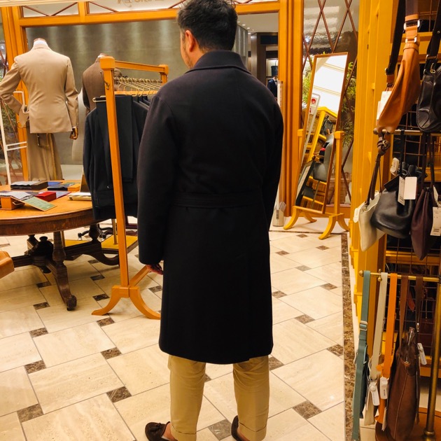 今日は入荷早々、新作のコートを試している蘭兄さんをパパラッチ。