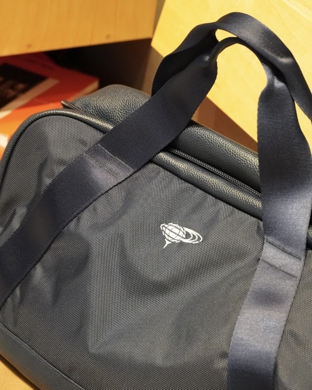 1680デニールのポリエステルと、シボの深いレザーのようなポリウレタンの2つの素材を組み合わせが上品で女性、男性問わないデザインです。